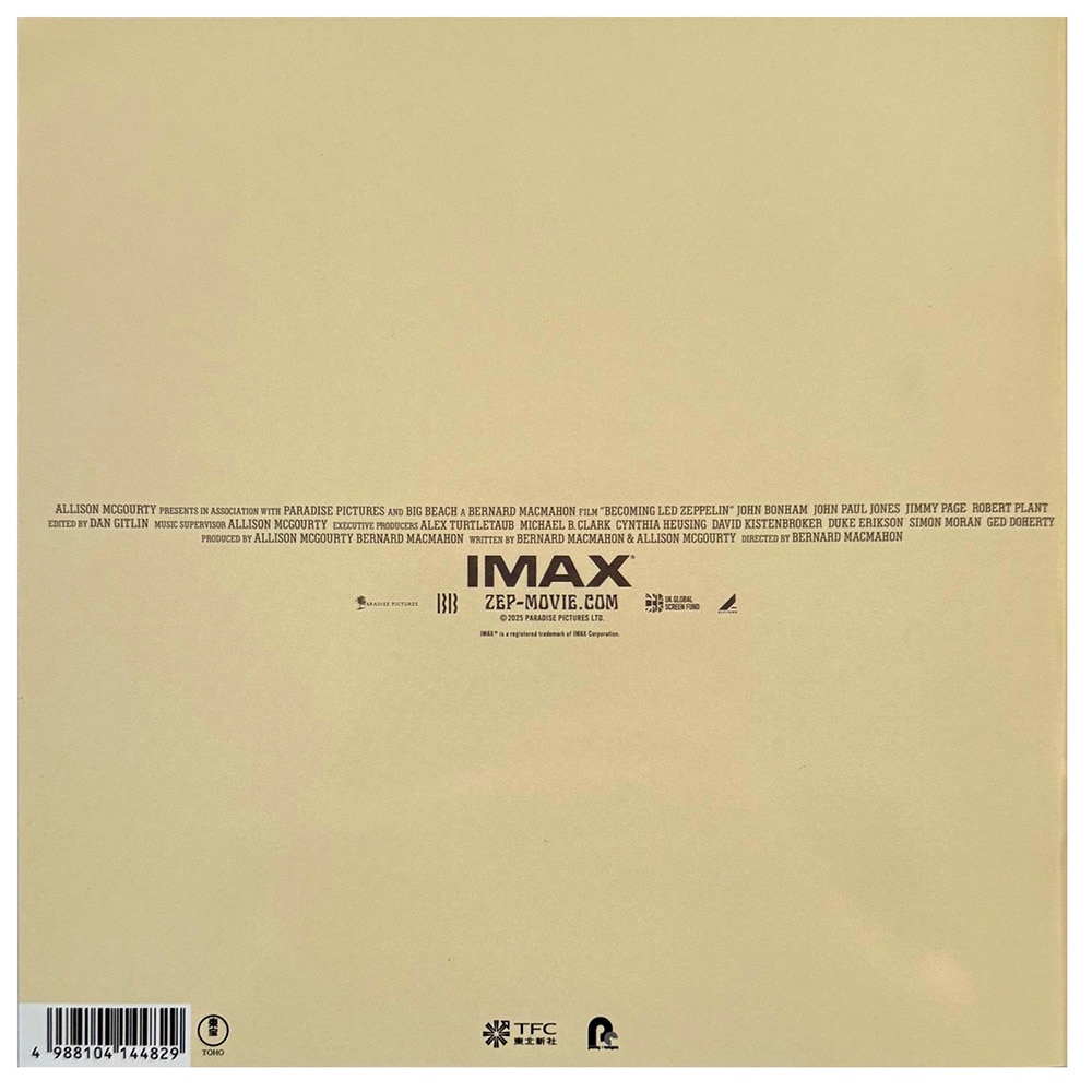 This 14-page souvenir program, measuring 9″ x 9″, is printed on thick, glossy stock and was distributed to attendees at the Japan IMAX premiere of Becoming Led Zeppelin on September 26, 2025.