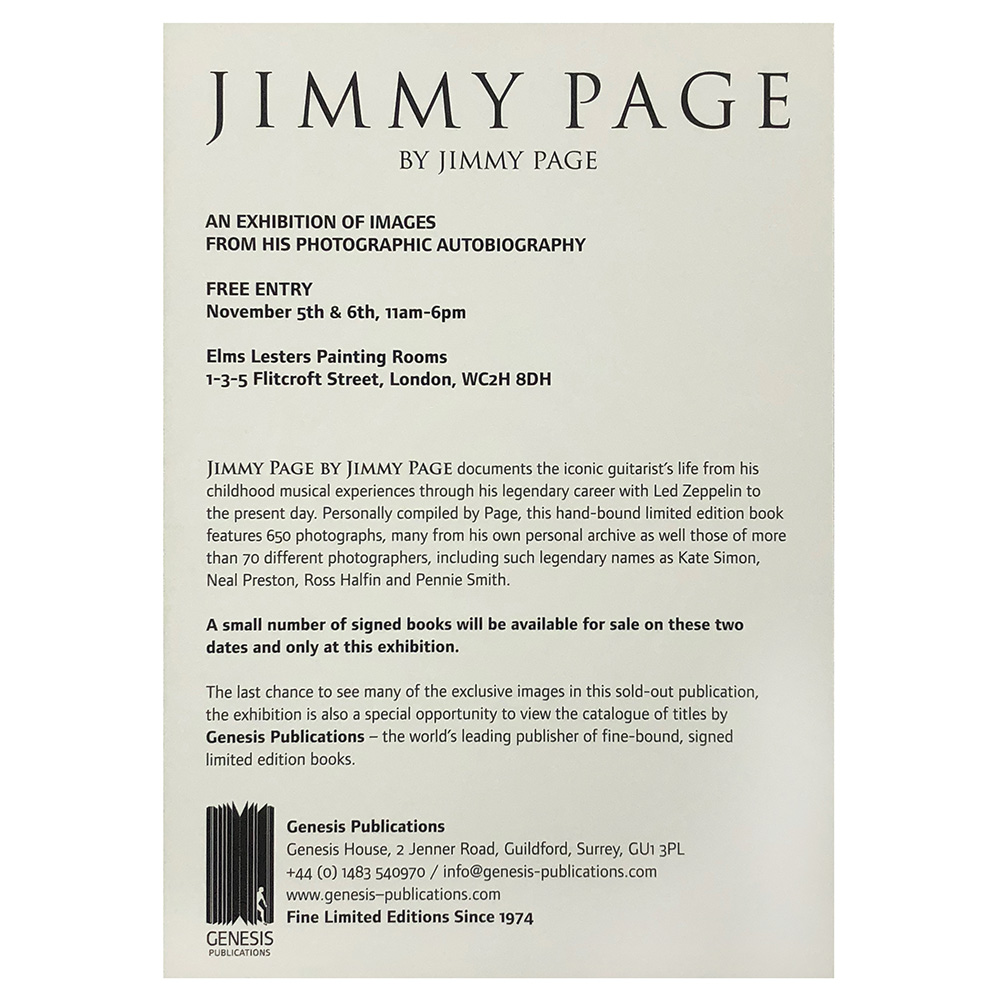 This flyer was used to promote the Jimmy Page by Jimmy Page exhibit, taking place on November 5th & 6th, 2010 at Elms Lesters Painting Rooms, London