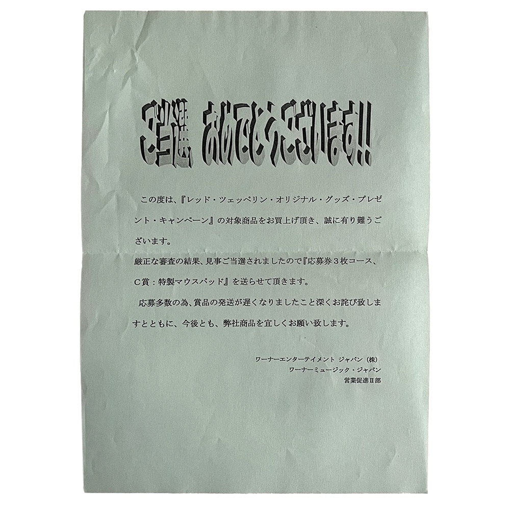 This mousepad was one of the prizes distributed as part of a promotional sweepstakes for customers who submitted coupons. The prizes offered varied depending on the number of coupons submitted.