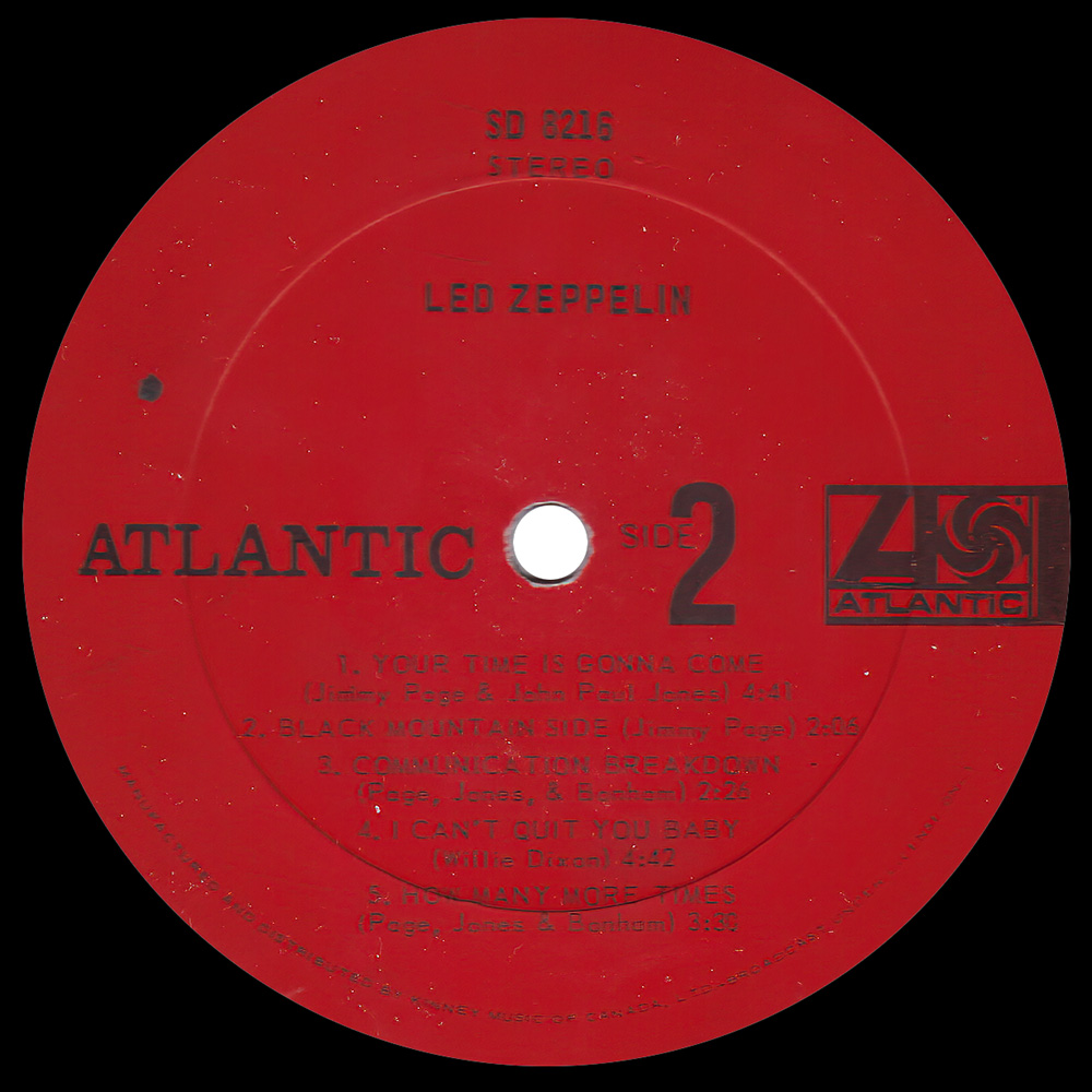 Version #6 – Red labels, Kinney Music copyright text at the bottom edge of the label, narrow ‘Led Zeppelin’ ridgeline towards the outer edge of the label