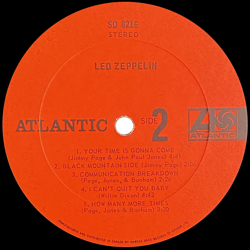 Version #6 – Red labels, Kinney Music copyright text at the bottom edge of the label, narrow ‘Led Zeppelin’ ridgeline towards the outer edge of the label