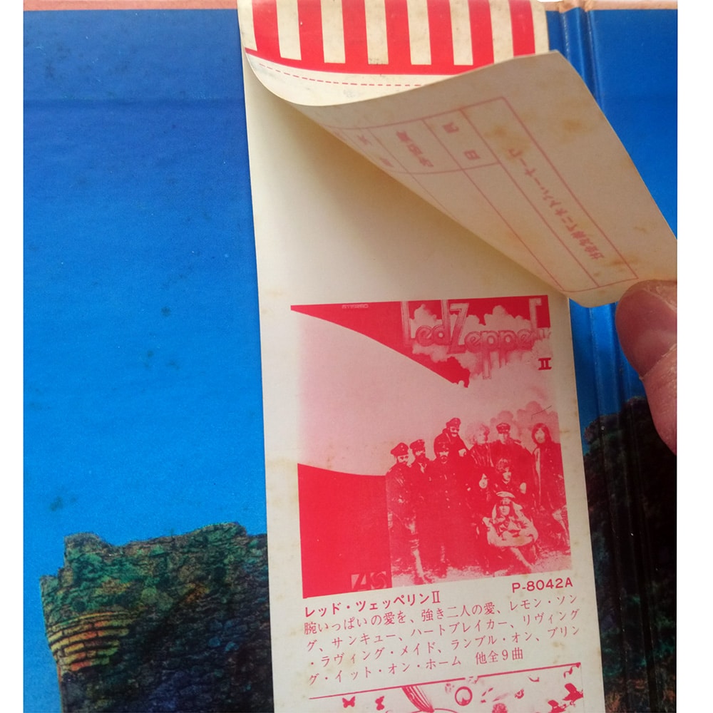 This earliest pressing includes the original ¥2,000 obi and title band, as well as a rare promotional insert. The insert translates to an “application form” for the forthcoming “Led Zeppelin V” LP, identifiable by the Roman numeral “V” printed at the top and bottom of the text. This suggests the album was issued before the companion inserts were ready, allowing purchasers to request them at a later date—making this version especially desirable among collectors.