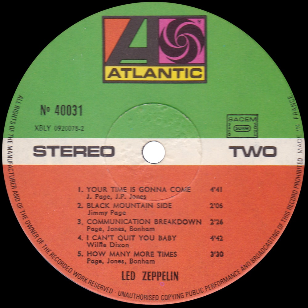 Version #4 – Green/orange labels, “XLBY 0920078-1” under catalog number on left of the label, “CHAPPELL” to the left of SACEM box, back sleeve Filipacchi distribution text under Atlantic logo, “U” price code back sleeve