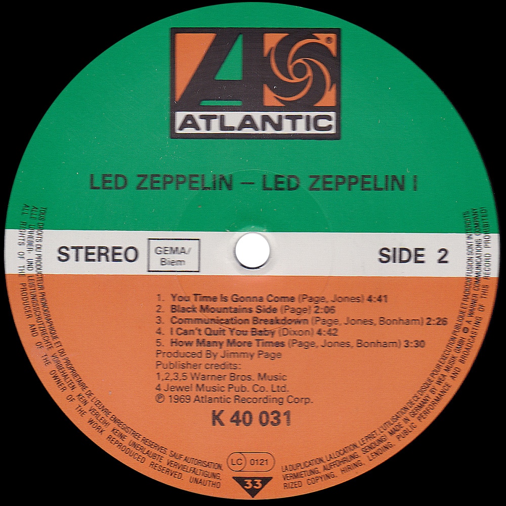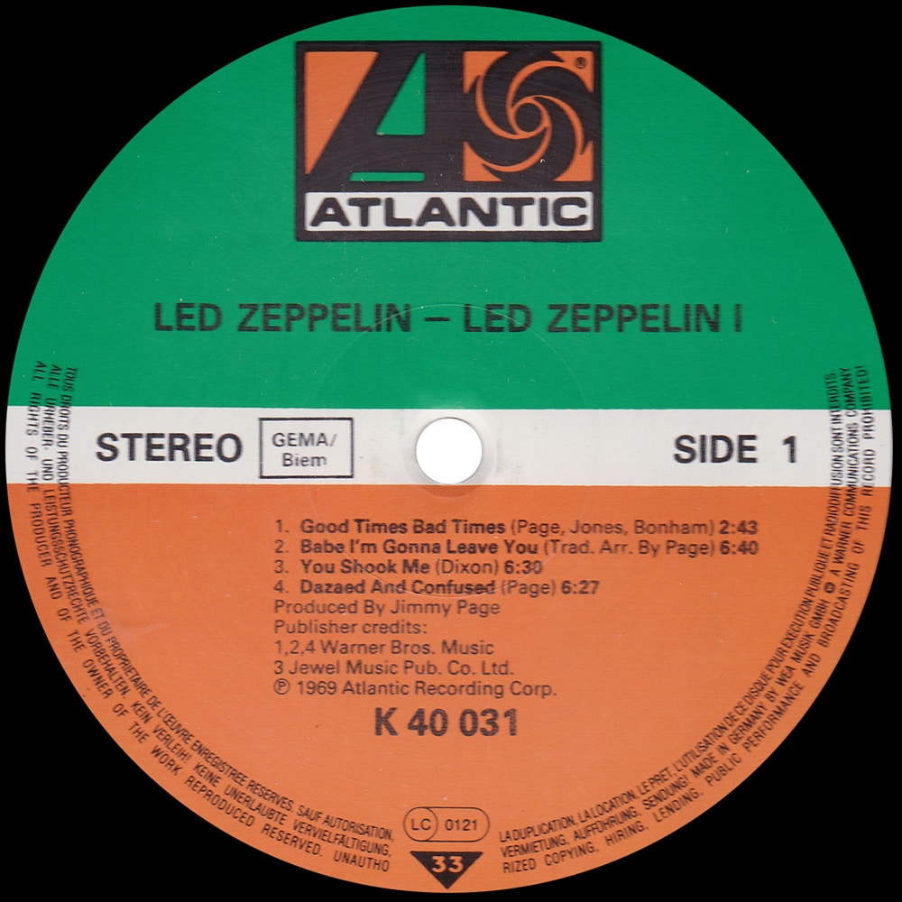 Version #1 – No copyright details, “LC 0121” at top of the label, “Dazaed” song title error, Warner logo and 2 lines of copyright text around the label, “Z” price code top right back sleeve and French “WE 341” price code