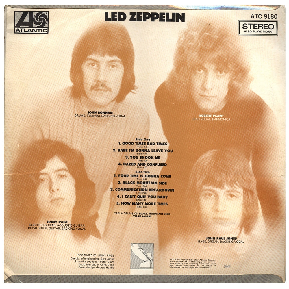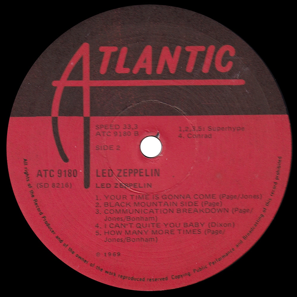 Version #5 – Red and black labels, brown front sleeve lettering and back sleeve band image, under ℗ 1969, missing a Warner Communication Company