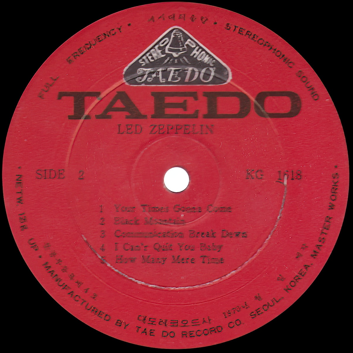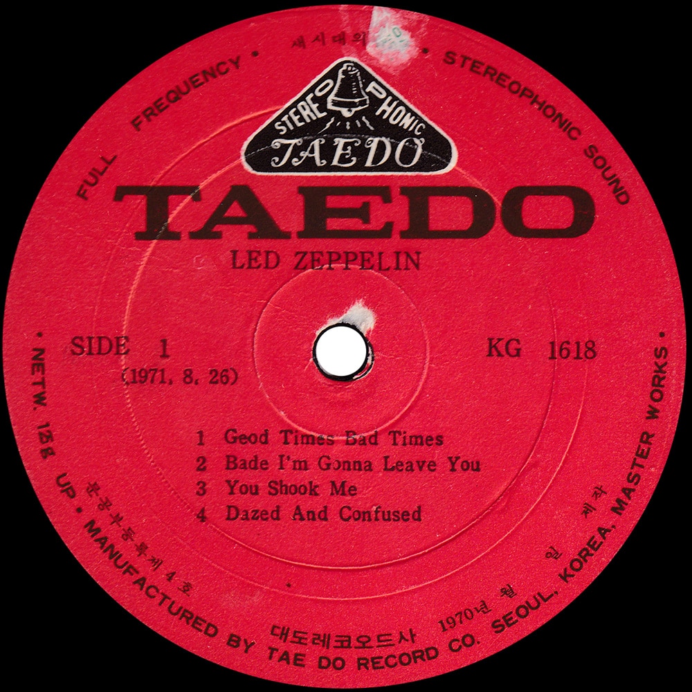 Version #4 – Darker color sleeve, alternate Taedo label, under SIDE 1 has “(1969 3, 16)”