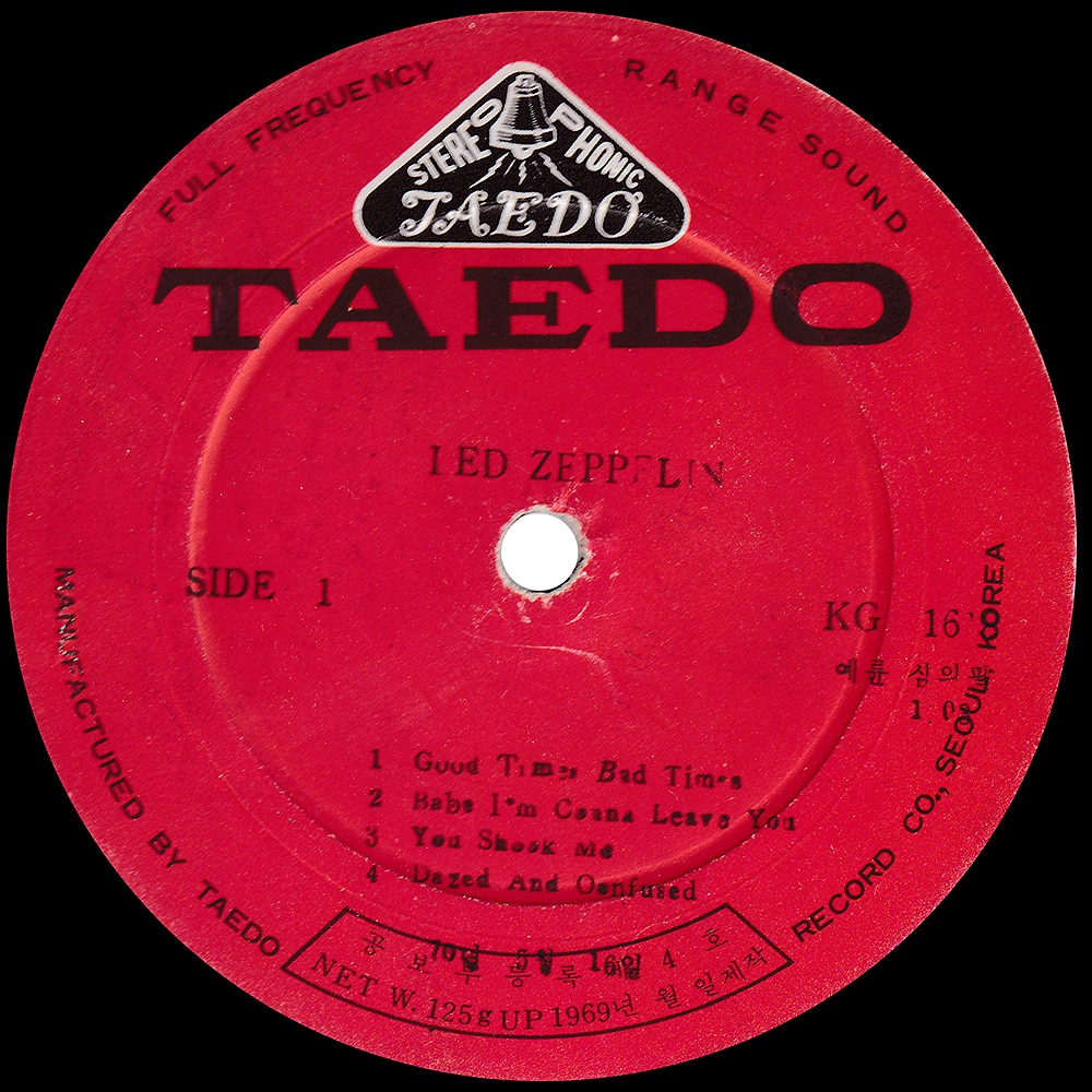 Version #4 – Darker color sleeve, alternate Taedo label, under SIDE 1 has “(1969 3, 16)”