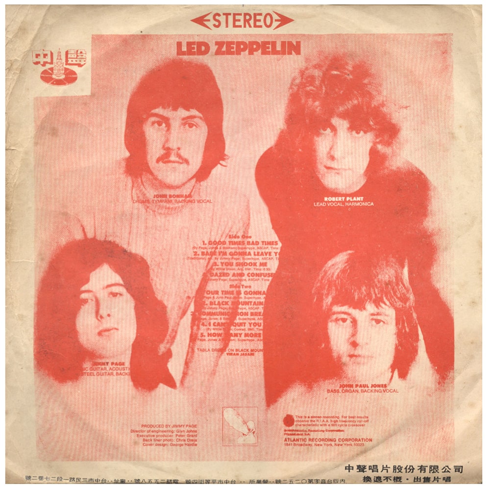 Red & white back sleeve; “SD 8216” bottom right (front); “stereo” top (back); record company logo top left (back); “Led Zepplin” misspelling on labels.