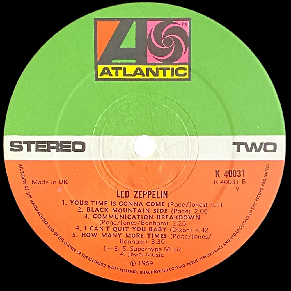 8th Pressing Matrix: K 40031 Origin: UK Label: Atlantic From the collection of Nick Anderson