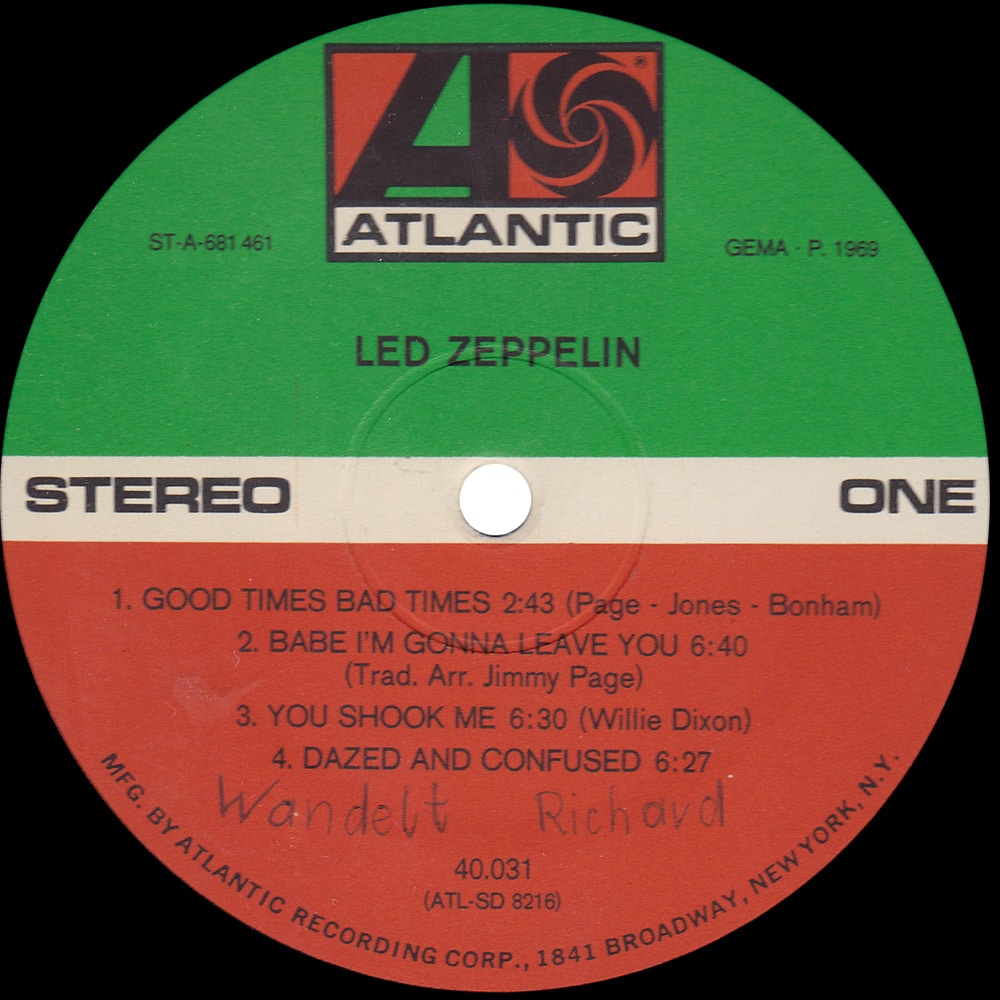 Version #1 – Green/orange labels, GEMA copyright top right of the label, “40.031” and “ATL-SD 8216” on labels, USA style labels