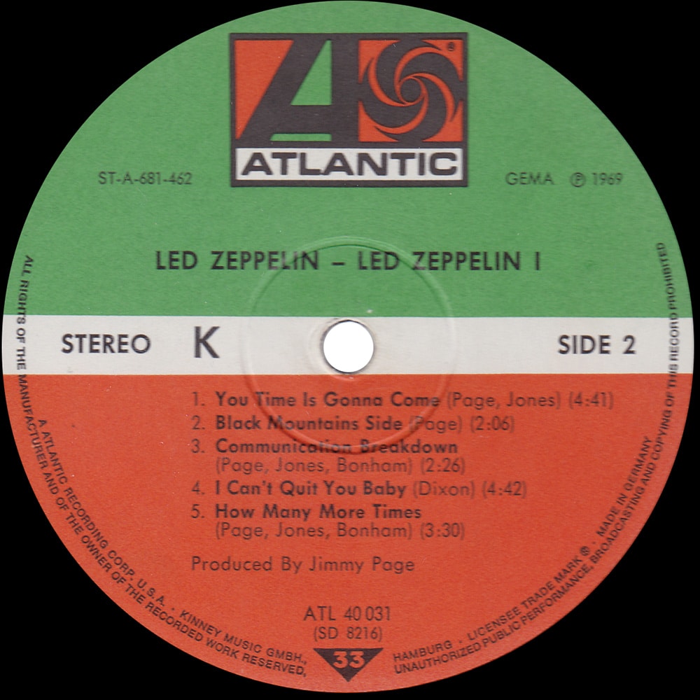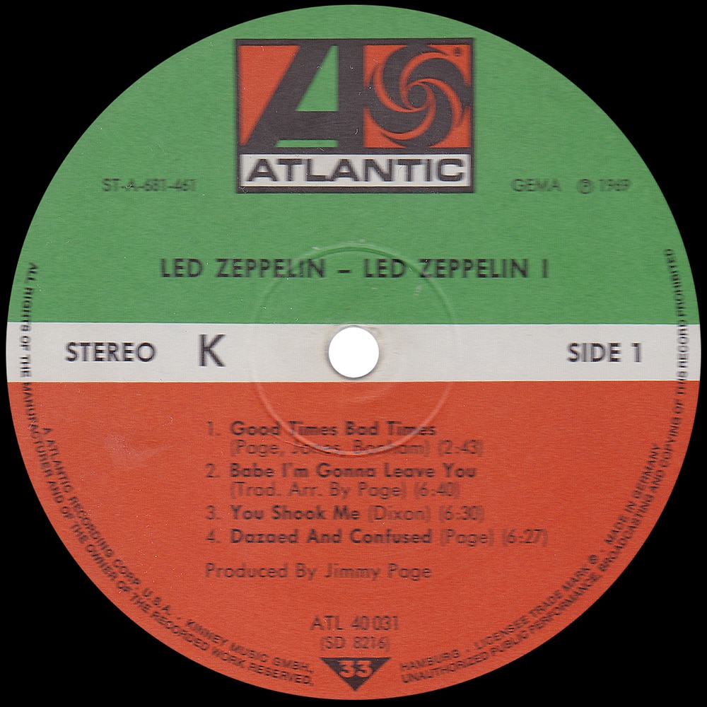 Version #1 – Green/orange labels, GEMA copyright top right of the label, “40.031” and “ATL-SD 8216” on labels, USA style labels