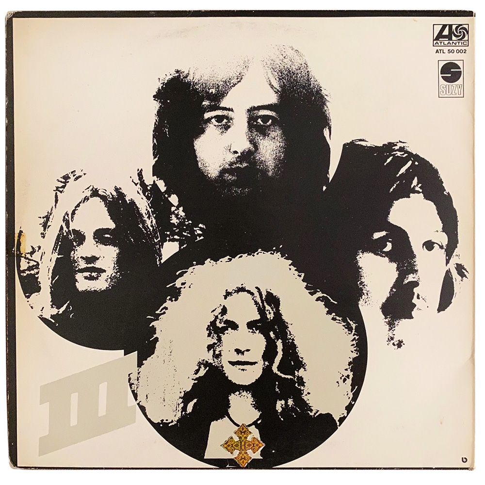 Version #1 – No printing in the white band on the label, the catalog number in the upper blue section, and the band name and album title in the lower orange section