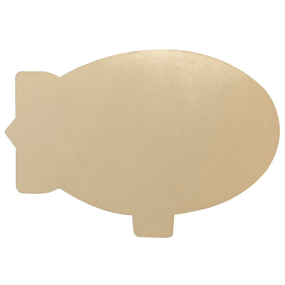 This die-cut blimp measures 6.5″ by 4.5″ and is one-sided.
