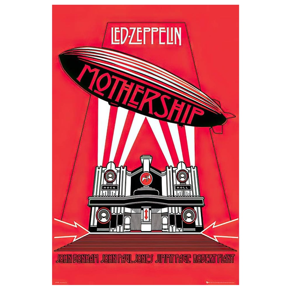 Original sheet metal printing plate used to produce the Led Zeppelin Mothership poster. Manufactured by GB Eye and featuring Mythgem Ltd. branding, this rare production artifact measures approximately 40.6 in x 31.1 in.