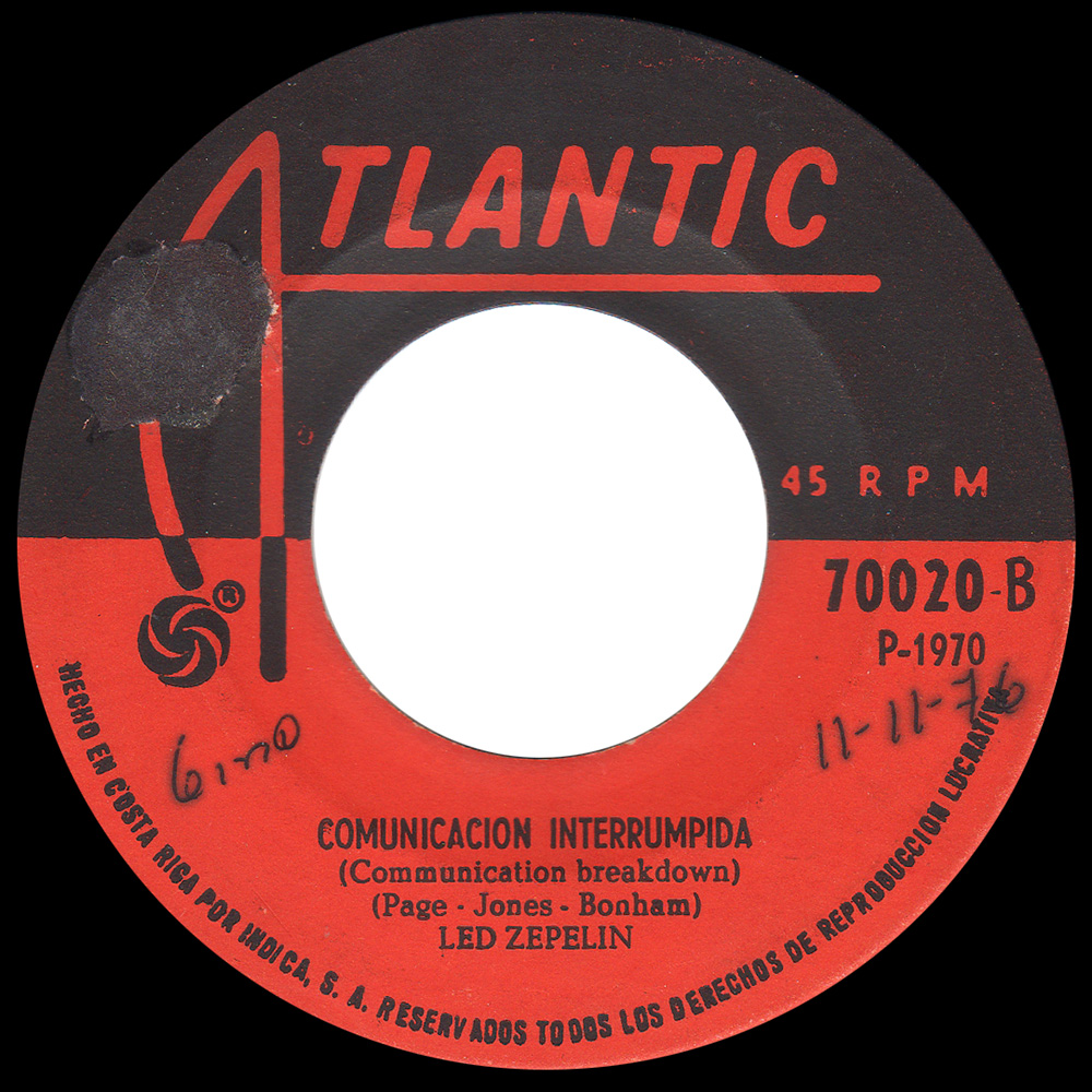 Version #5 – Side A/B or the opposite of the other releases. This has Side A: Communication Breakdown and Side B: Whole Lotta
