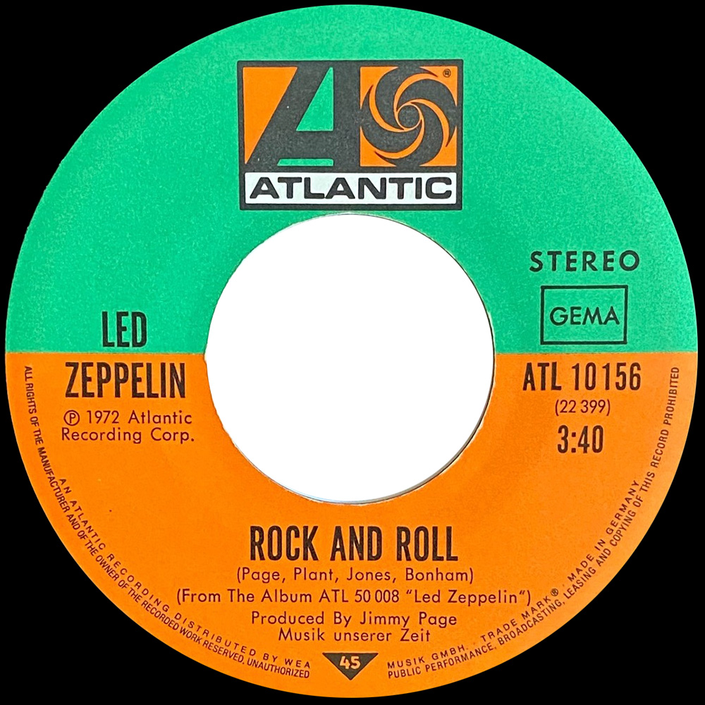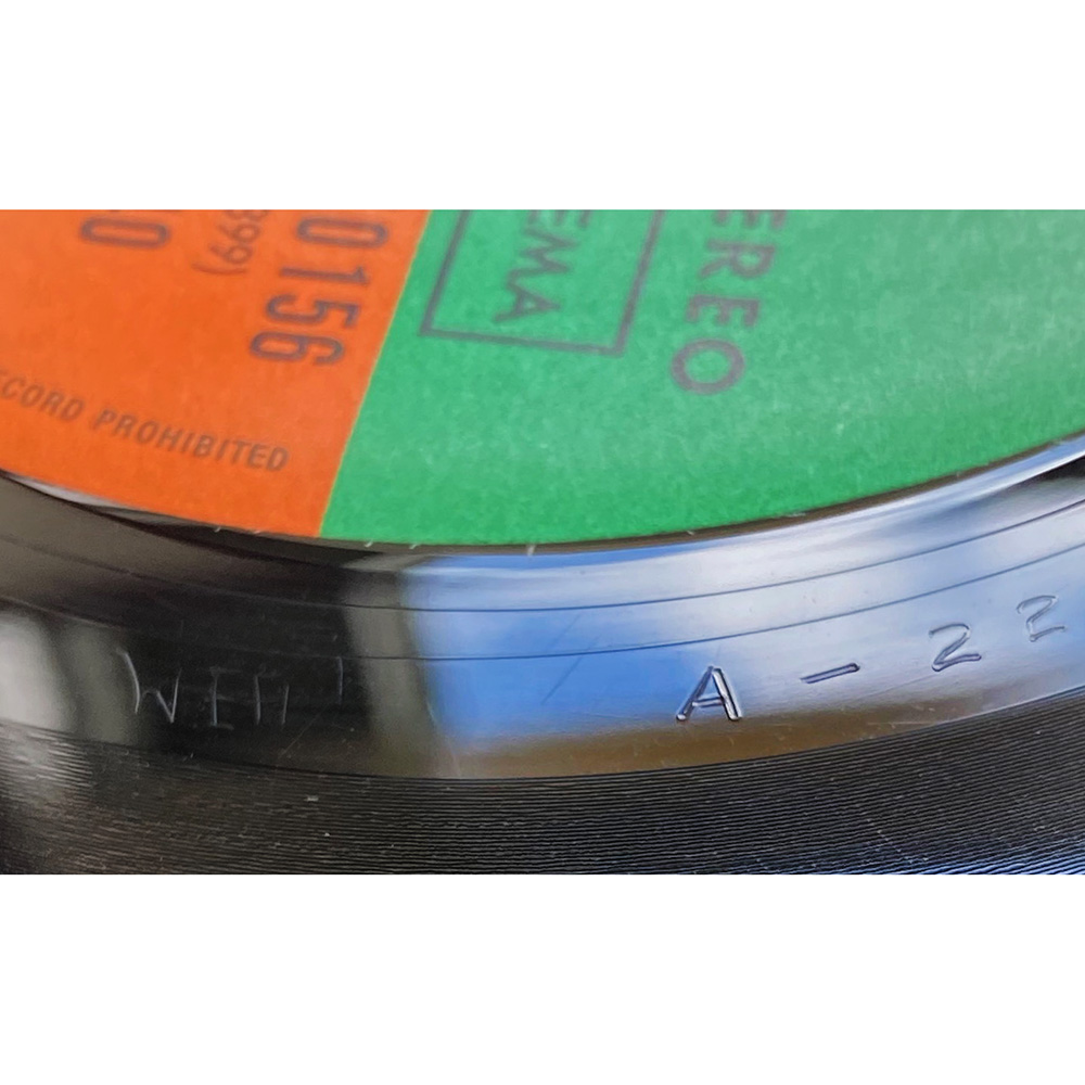 Version #5 – 5th pressing – green and orange labels with edge text in lower orange half of label only – “WEA A-22399-1” and “WEA A-22403-1” run-out etchings