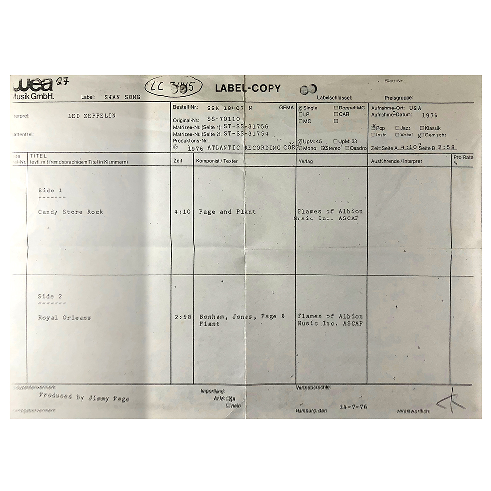 Candy Store Rock / Royal Orleans (Test Pressing #1)