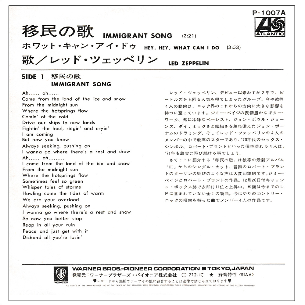 Immigrant Song / Hey, Hey What Can I Do (#3)