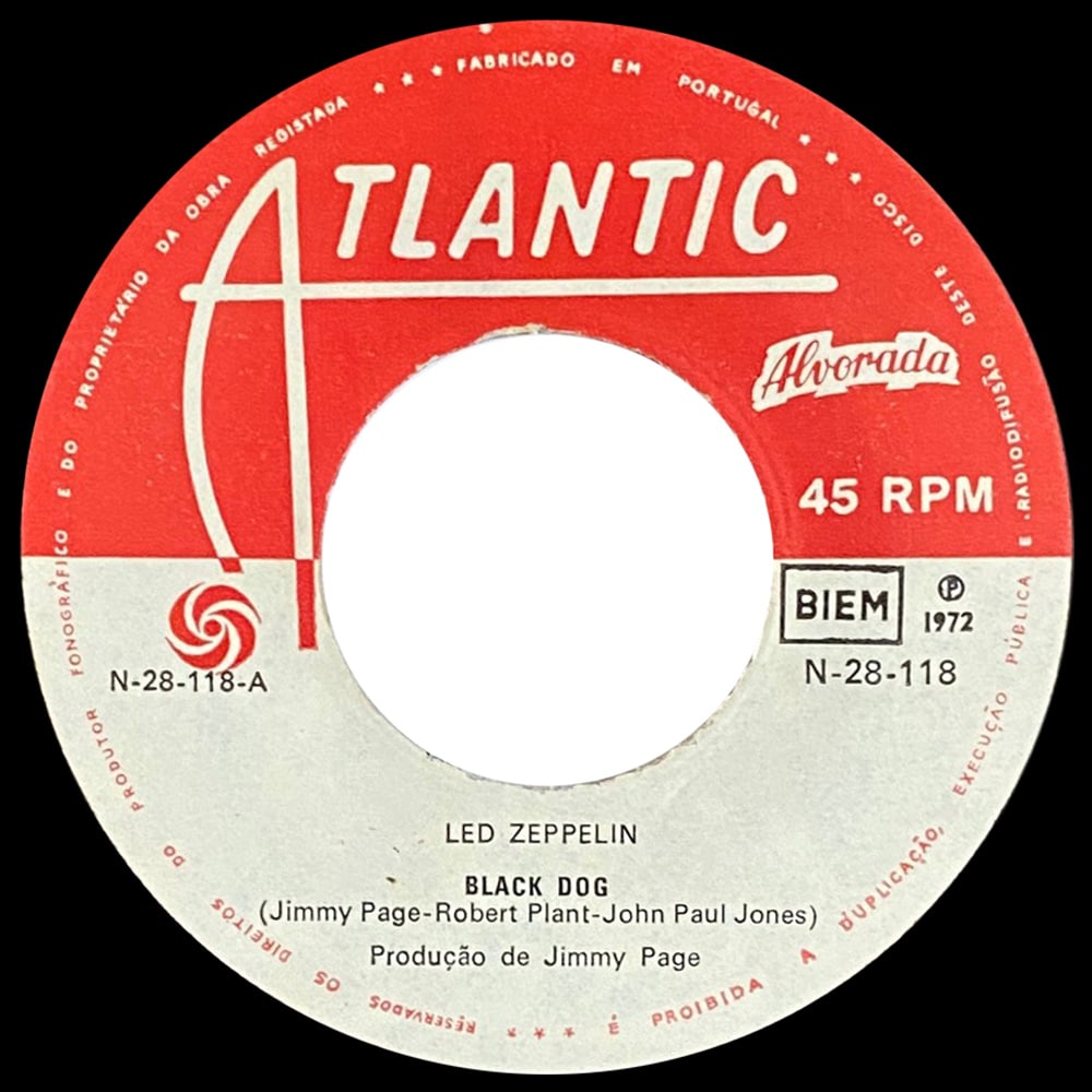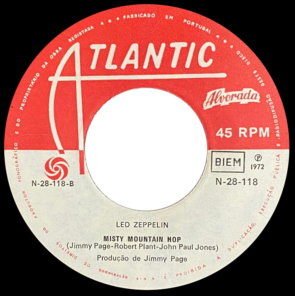 Version #5 – large Atlantic logo on the back sleeve, 2 lines of text at bottom of the back sleeve with “graficos” in lower case in the middle, wider spaced “N-28-118” on front and back of the sleeve, narrow title and artist label credits, “Producao” label credit