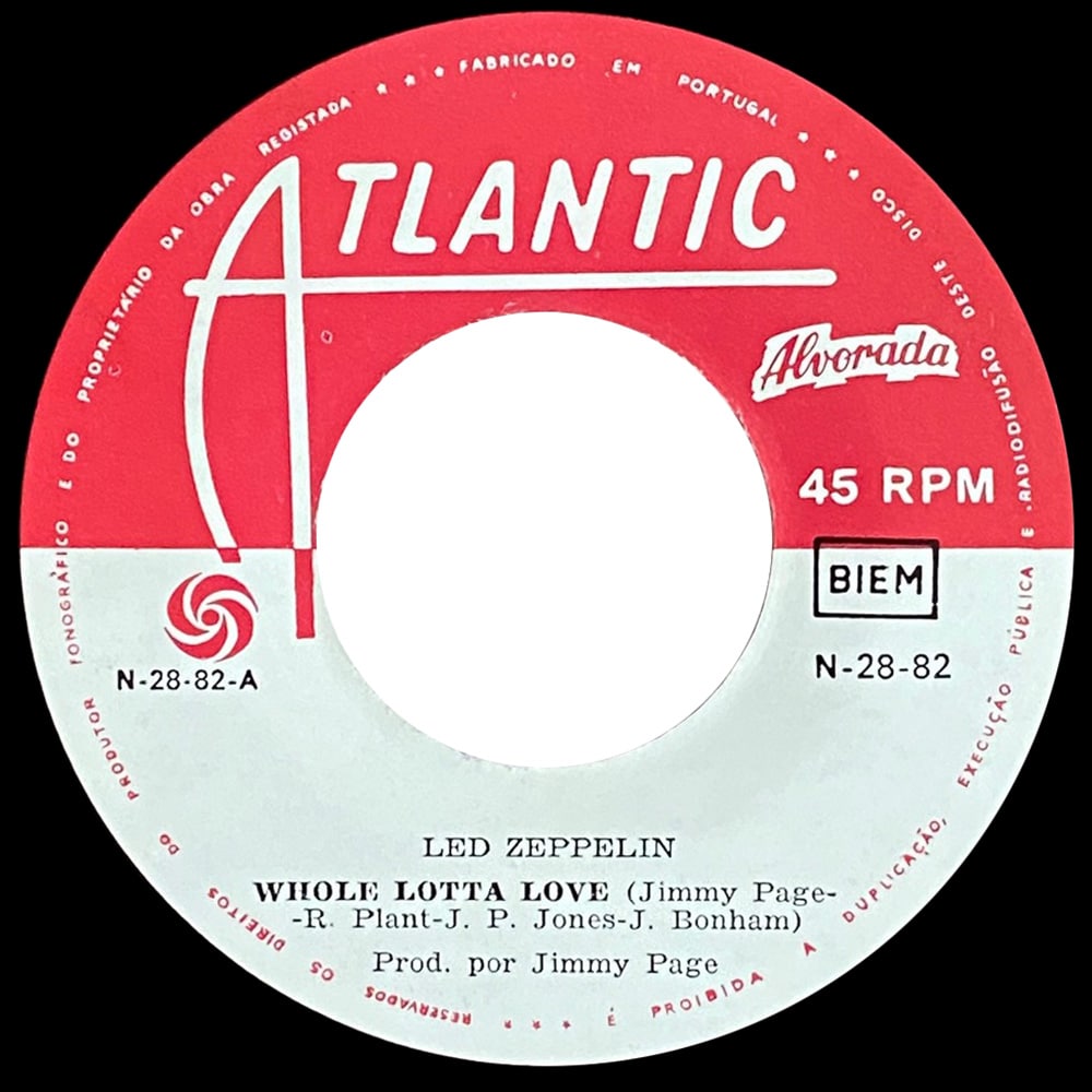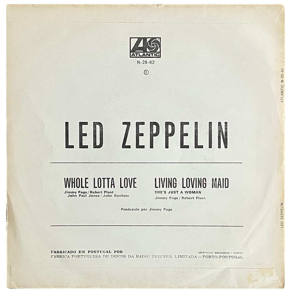 Version #3 – wide catalog number on front sleeve, “LED ZEPPELIN” in capitals on the back sleeve, lower case, and lighter “graficos reunidos – porto” at bottom of the back sleeve, narrow title lettering on labels