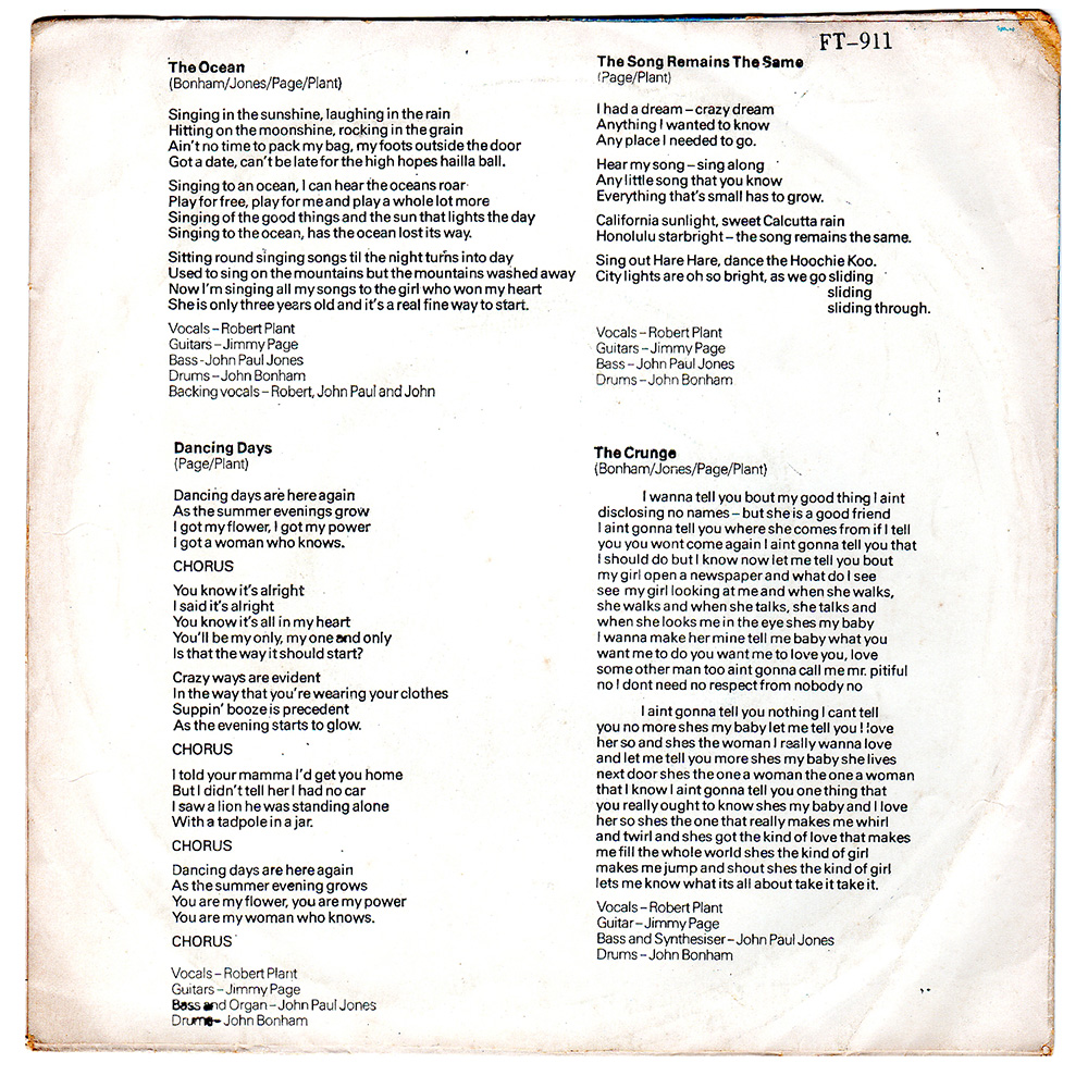 The Ocean / Dancing Days / TSRTS / The Crunge (#2)