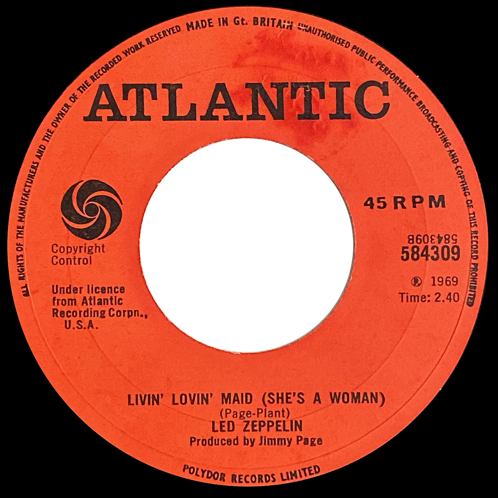Also shown is a Polydor promo flyer announcing the release of Whole Lotta Love (along with other releases). The date is 5th December 1969, which is the same as the date stamp on the promo copies of this release. Led Zeppelin II is also listed on the reverse side of this flyer.