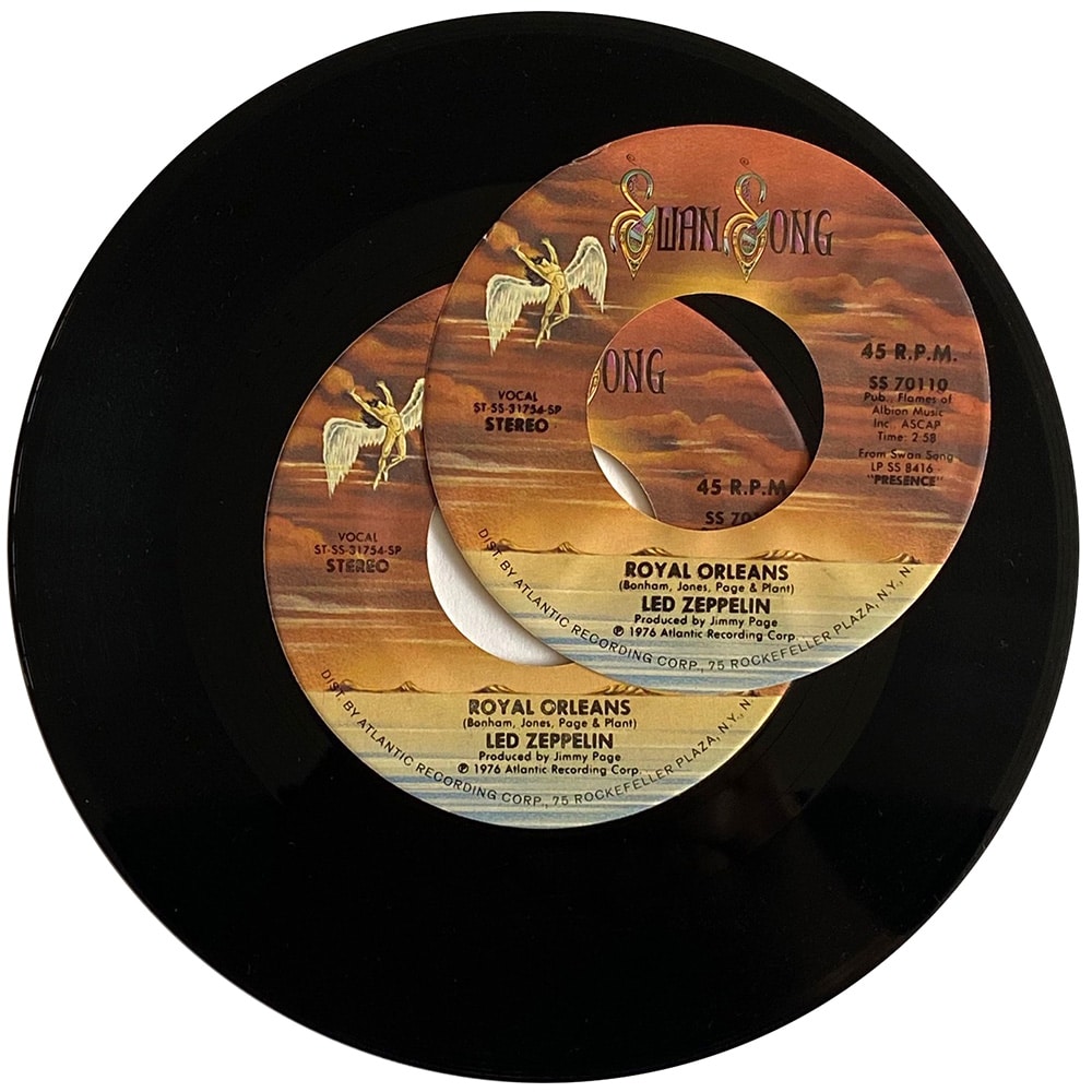 Version #1 – SP on the label, 1st pressing, “45 RPM” above catalog number, 3 lines of text under “Led Zeppelin