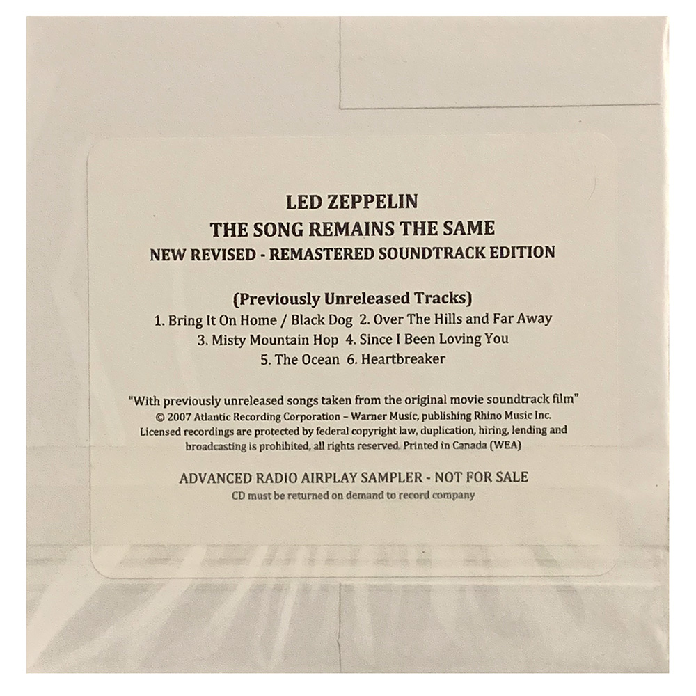 This promotional Advance Radio Airplay Sampler compact disc has 6-tracks and distributed by Atlantic Recording Corp to promote the 2007 reissue.